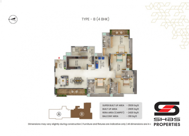 Built-up area – 2429 Sq.ft. to 2905 Sq.ft.
