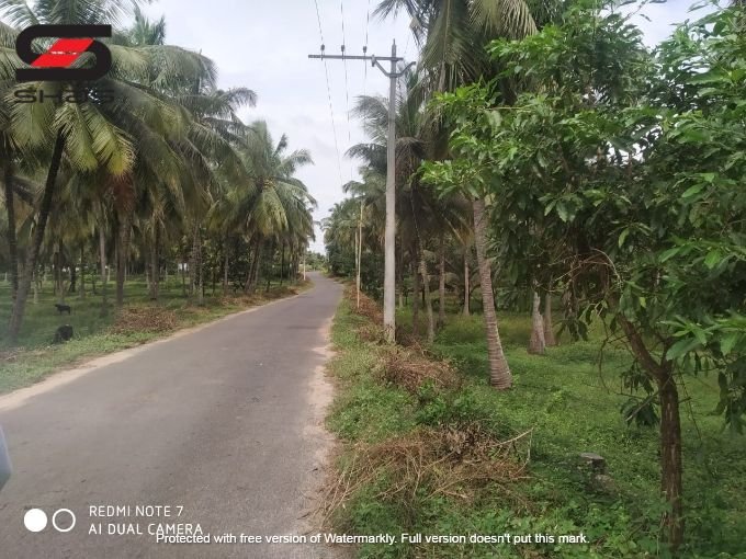 Road facing property with 1750 Sq ft farm house and land area - classified into 20 acres coconut (1300 nos.) and 8 acres mango plantation (400 nos.).