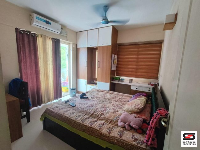 Amenities: This 3 BHK flat includes water heaters in all bathrooms, ACs in two bedrooms and the living room, and amenities like a swimming pool, kids' playground, garden, library, gym, hall, lobby, 24-hour security, and all-day housekeeping. It also has two balconies and an open kitchen with a dining area.