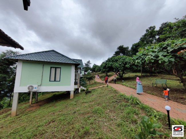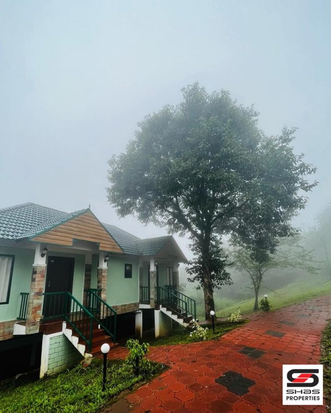Other Details: The resort features 12 villas, each measuring 450 square feet. The estate boasts a 2.5-kilometer road frontage, 1,300 tapping rubber trees, 8,000 three-year-old rubber trees, 500 areca nut trees, and 400 coconut trees. It generates an impressive monthly income of 2.25 lakhs from the resort and 80,000/- to 1 lakh from agricultural activities.