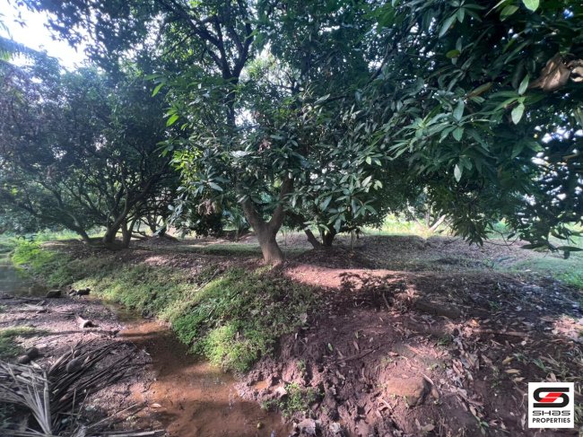 Crops Cultivated: This farmland has 80 coconut trees and 17 mango trees.