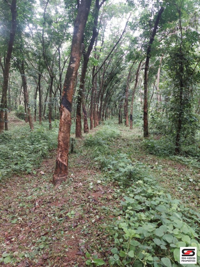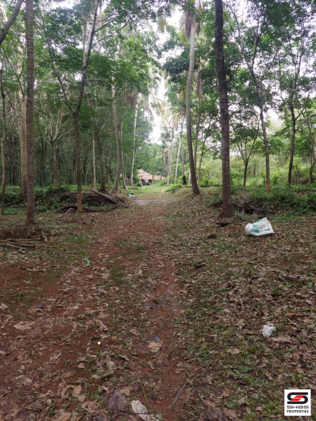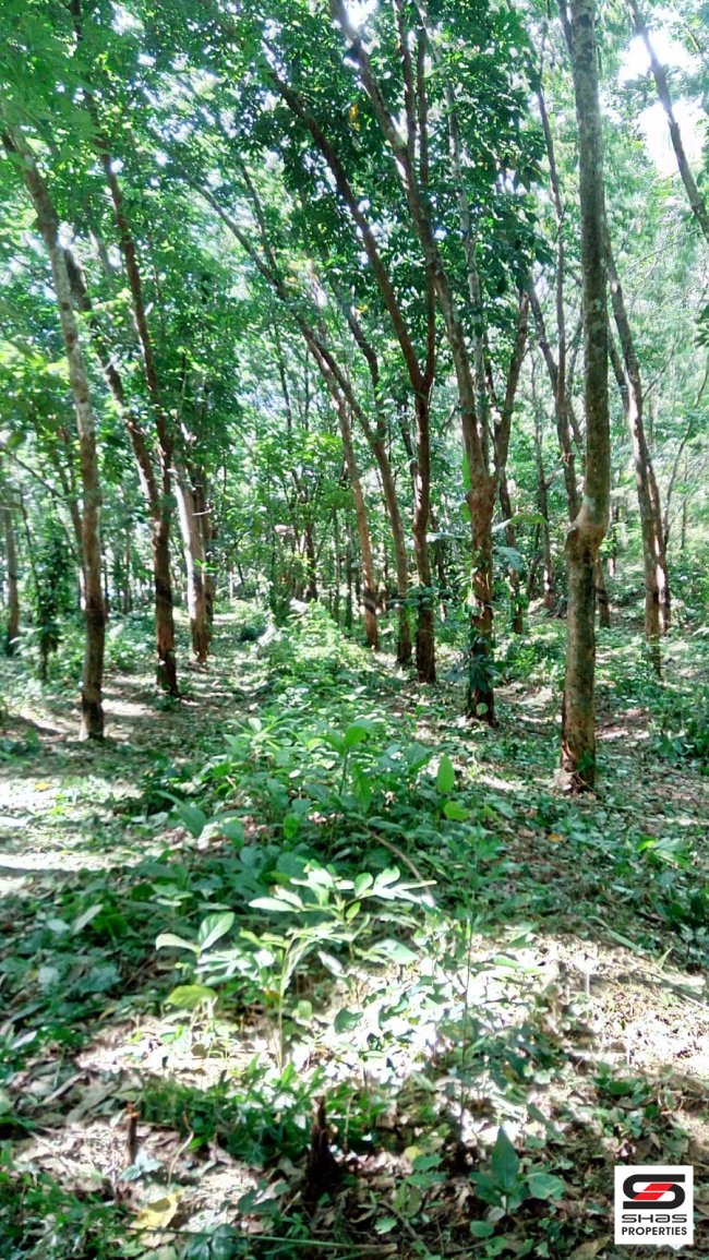 Other Details: The property includes an old house, 1100 rubber trees (under 10 years old), 130 coconut trees, and various other trees such as teak, mango, and jackfruit. Can be split into 2 or 3 acres.